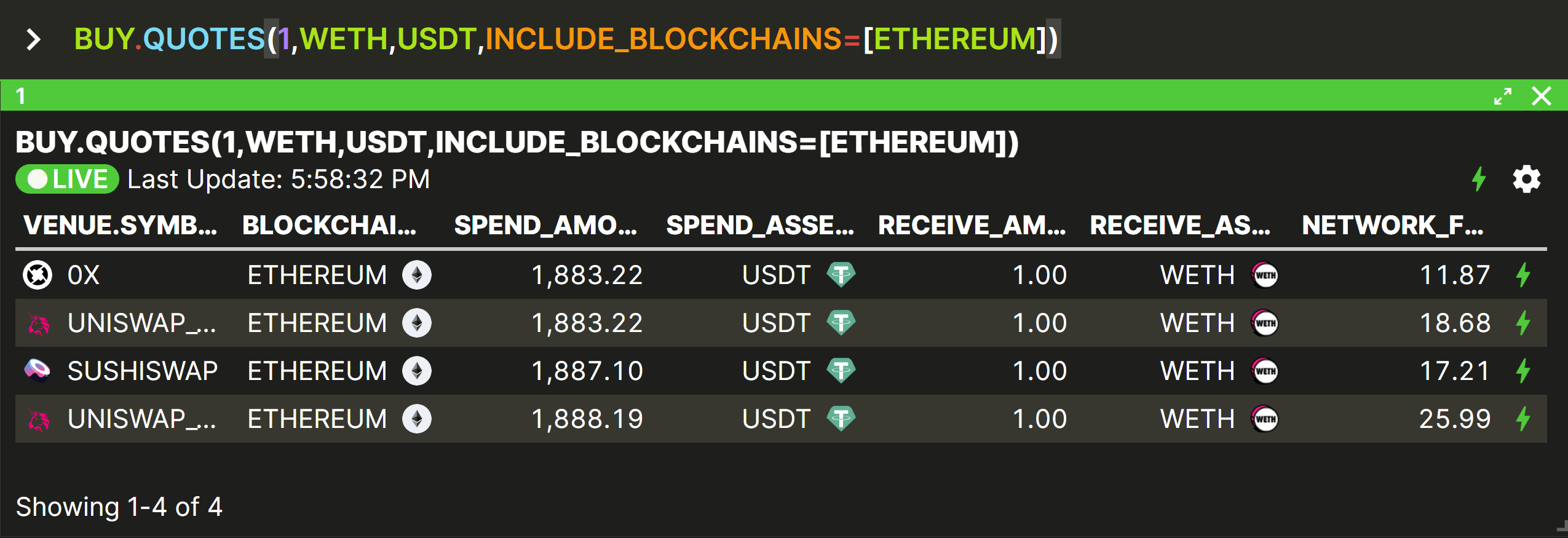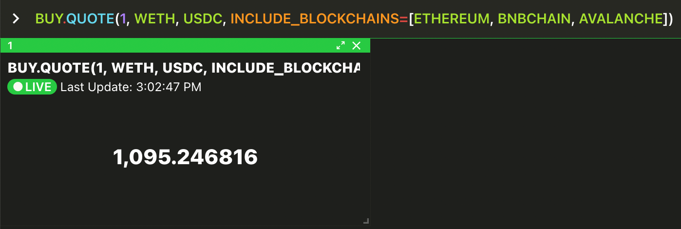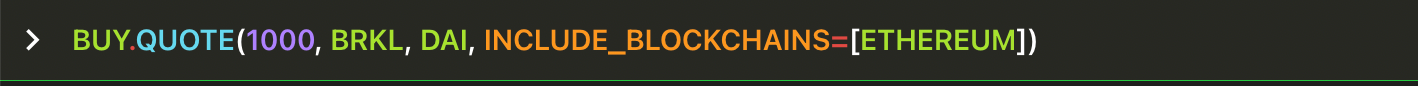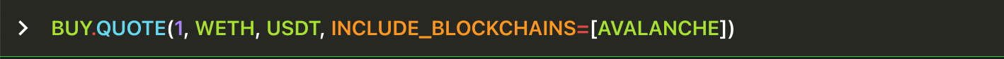BUY.QUOTES is very similar to BUY.QUOTE except that it outputs a table showing the same quote for each supported venue on each chain, instead of just the single ‘best’ quote found on all chains.