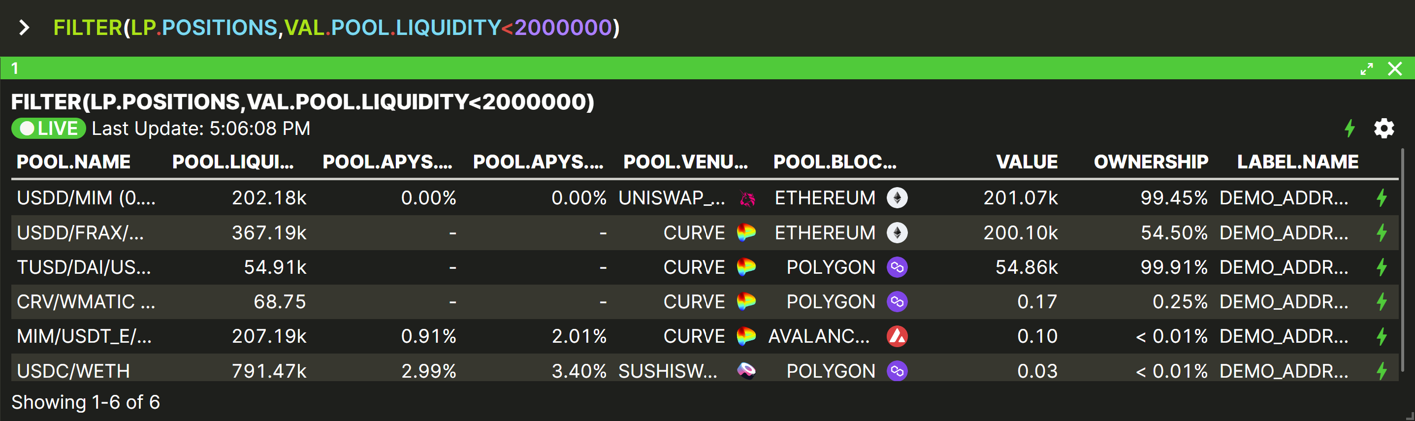 FILTER(LP.POSITIONS , VAL.POOL.LIQUIDITY < 2000000)