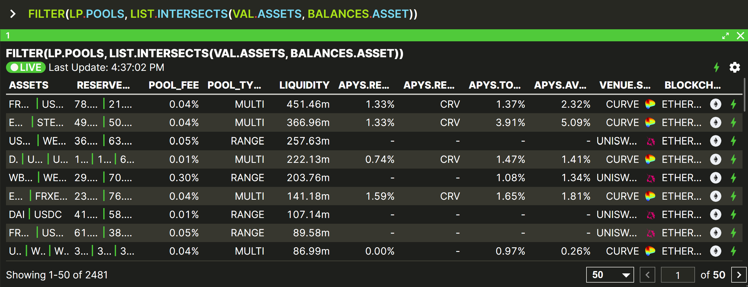 FILTER(LP.POOLS, LIST.INTERSECTS(VAL.ASSETS, BALANCES.ASSET))