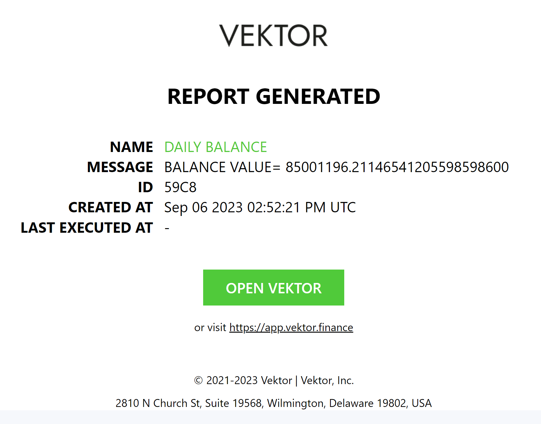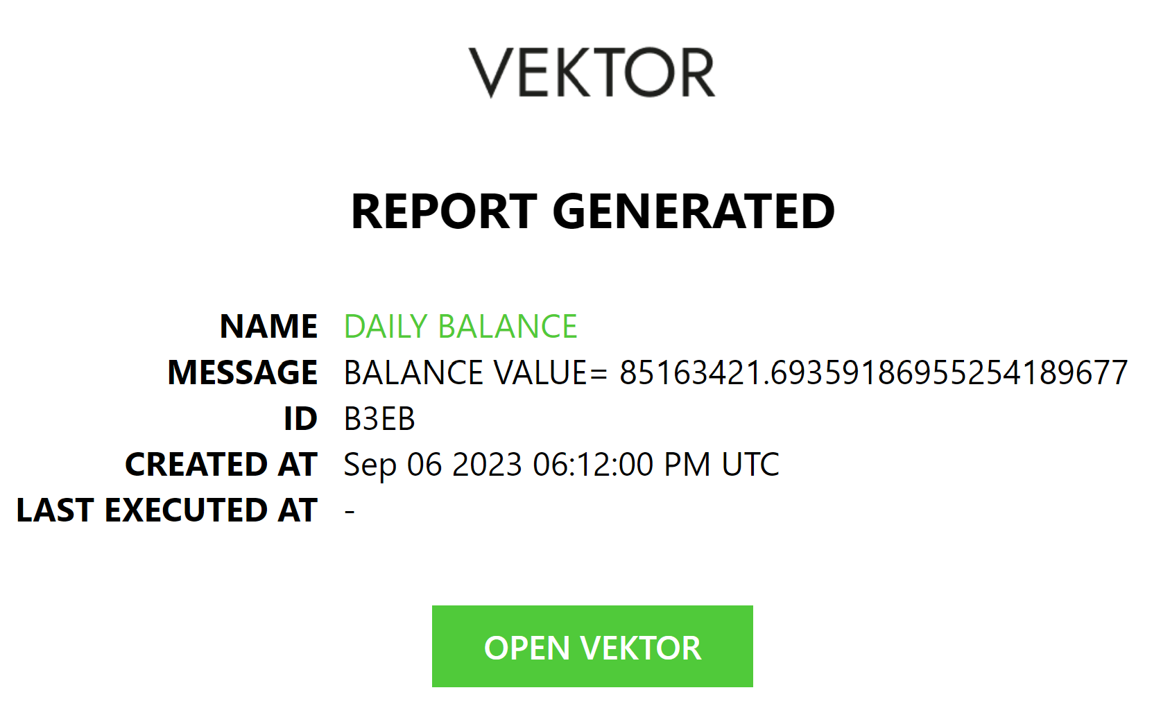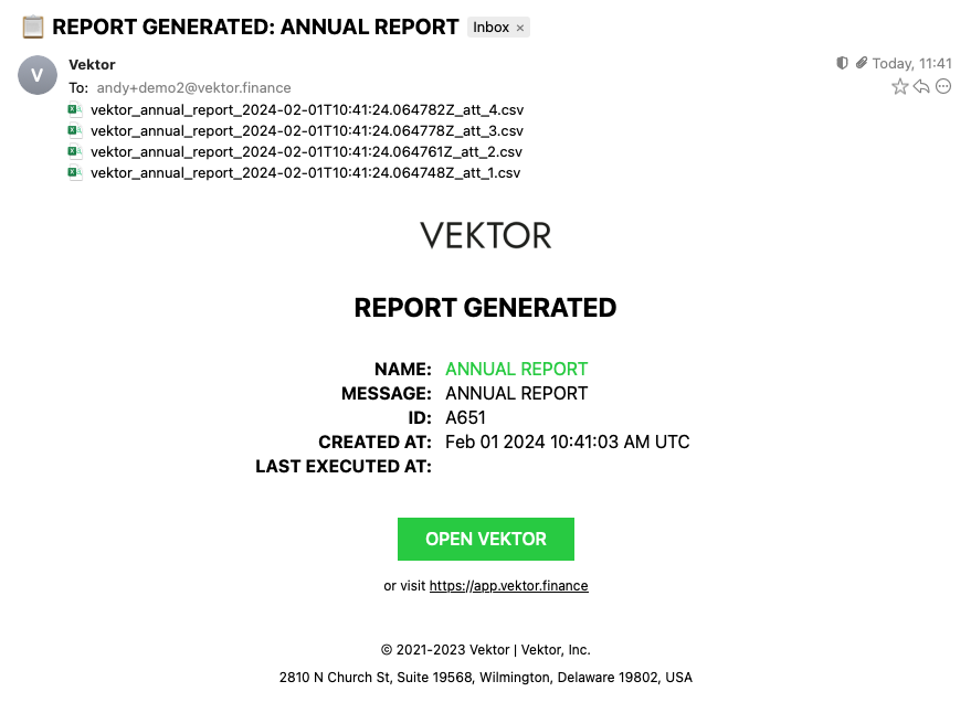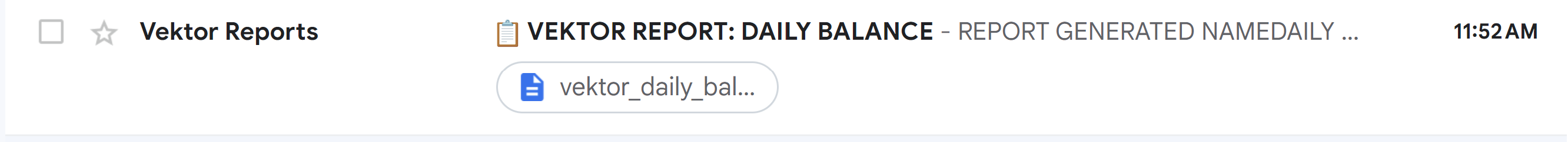 Emailed reports will come from Vektor and contain the optional report NAME in the subject (if provided).
