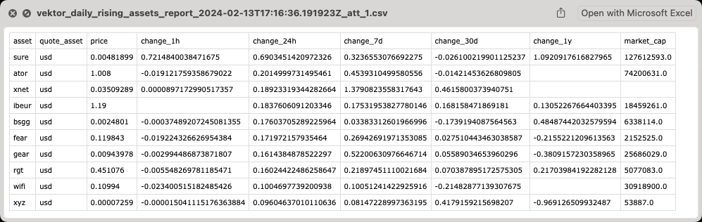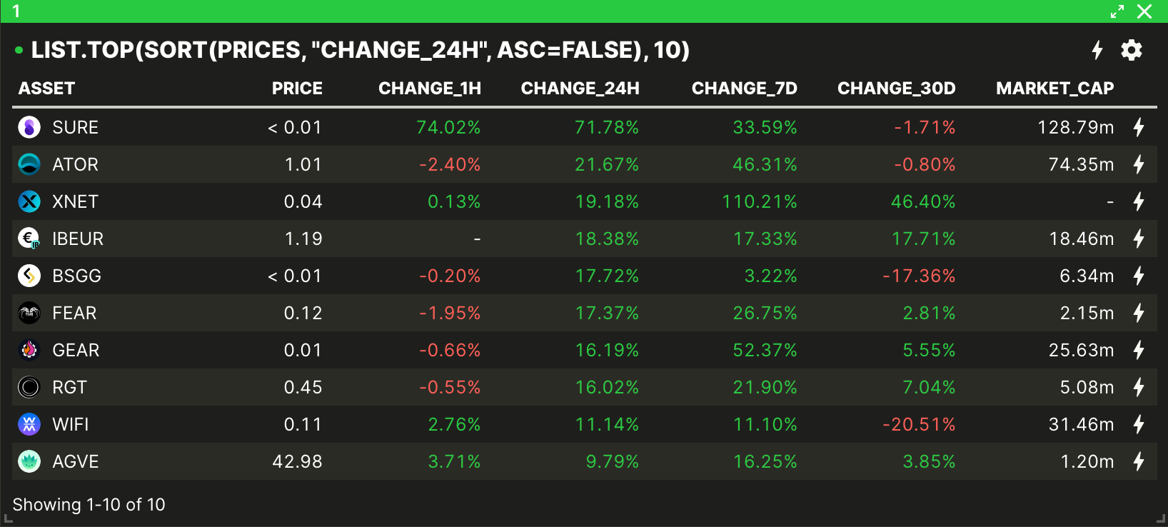 📡 Example: Send me a report every morning of the top 10 rising and falling assets