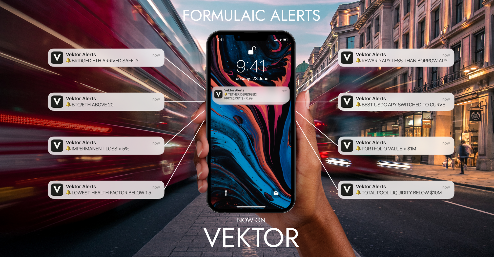 🎉 We're thrilled to launch Formulaic Alerts! A powerful feature that really showcases Vektor's capabilities, you can now create highly customized, composable alerts based on any arbitrary conditional statement you can think of. The possibilities are endless!