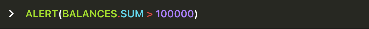 We don't know of any other alerting tool out there that gives such powerful flexibility. Using the ALERT() function, you just write any conditional statement, drawing upon thousands of data points across all the chains and venues Vektor supports, including your own positions and transactions. Add any logical depth you need with our AND, OR, and IF functions. Once created, Vektor will continue to evaluate the condition...
