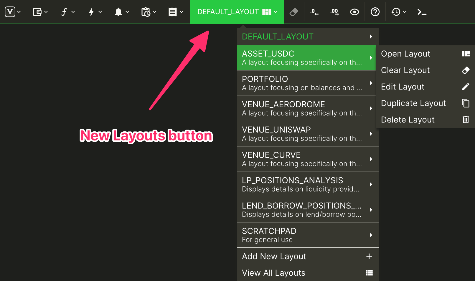 Access your Layouts with the new Layouts button in the App Toolbar.